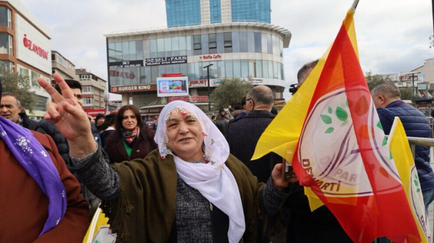 Li qada mitîngê pankarta “Ji bo azadiyê ked, edalet û aştî” hat daliqandin. Heverdevka Kongreya Demokratîk a Gelan (HDK) Meral Daniş Beştaş û Hevseroka Giştî ya DEM Partiyê Tulay Hatîmogûllari jî tevlî mitîngê bûn.