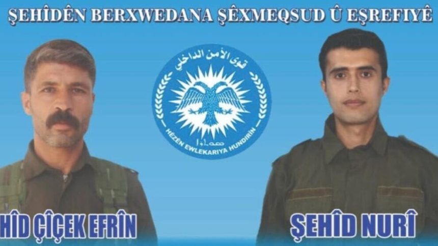 Fermandariya Hêzên Ewlekariya Hundirîn bi daxuyaniyekê nasnameyên 2 endamên xwe aşkera kirin ku di berxwedana li hember êrişên hêzên hikumeta veguhêz a Sûriyeyê yên li ser taxên Eşrefiyê û Şêxmeqsûdê yên Helebê de şehîd bûne.