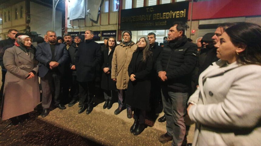 Hevşaredara Bajarê Mezin a Wanê Neslîhan Şedal jî axivî û wiha got: “Îro vîna gel, ciwan û jinan tê desteserkirin. Di 31’ê Adarê de me li Wanê her 14 şaredarî jî qezenc kir û derseke dîrokî da wan. Em dizanin ku ev pêkanîn ji ber bêtehemuliya li hemberî 14 şaredariyan e. Tişta ku AKP bi hilbijartinan nikare bi dest bixe, hewl dide bi desteserkirin û diziyê bi dest bixe. Piştî ku şaredarî destserkirin pankarta ‘Em destûrê nadin dagirkeriyê’ daxistin. Em dixwazin gelê me bertekên xwe yên demokratîk li dar bixin, xwedî li vîna xwe û malên xwe derkevin. Em ê teqez bi ser bikevin, qeyûm wê biçin, gel wê bên.”