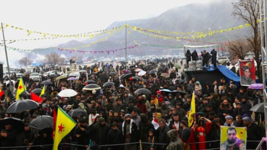 Têvî hewaya sar û baranê ji bi hezaran kes li qada pîrozbahiyê kom dibin.
