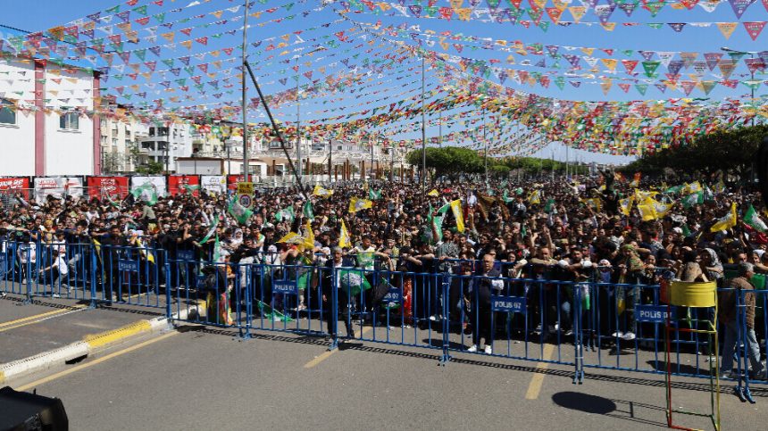 Di pîrozbahiya ku piştî deqeyek rêzgirtinê destpê kir de Hevserokê Partiya Wekhevî û Demokrasiyê ya Gelan (DEM Partî) ê Antalya Selamî Ozyaşar axivî û wiha got, “Me gelek êş, zilm û zordarî dît. Em dixwazin êdî li welatekî demokratîk bijîn. Em perwerdeya bi zimanê xwe yê dayikê dixwazin. Êdî bes e ji polîtîkayên şer, pevçûn, înkar, zext, zilm, binçavkirin û tayînkirina qeyûman re. Pêvajoyeke nû heye. Niha dema aştî û biratiyê ye.” Ozyaşar diyar kir ku Rêberê Gelê Kurd Abdullah Ocalan rê li ber aştiyê vekiriye û di vê navberê de girseyê dirûşma; ‘Bijî Serok Apo’ berz kir. Ozyaşar bertek nîşanî girtina şaredarê Bajarê Mezin ê Stenbolê Ekrem Îmamoglu da.