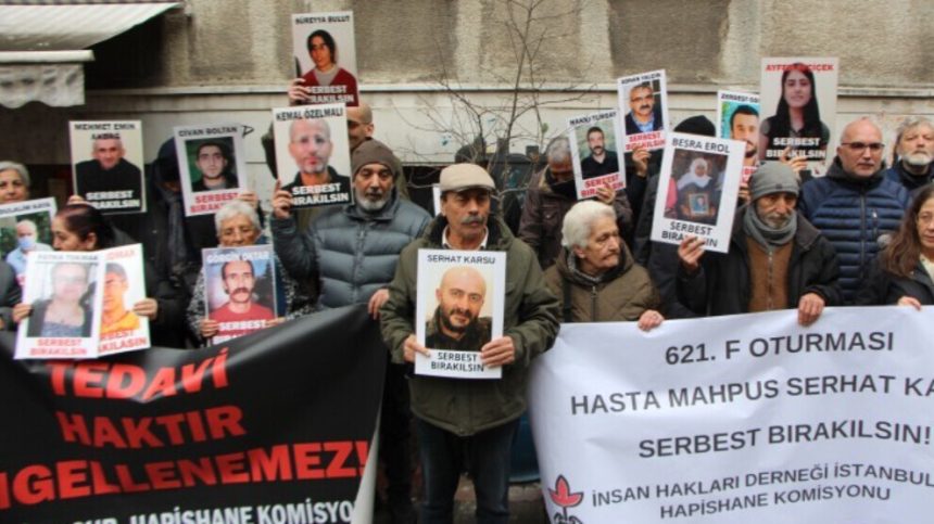 Komîsyona Girtîgehan a Şaxa ÎHD’a Stenbolê her hefteyê çalakiya “Rûniştina F’yê” li dar dixe. Çalakî di hefteya 621’an de li pêşiya avahiya komeleyê ya li Beyoglûyê hat lidarxistin. Di çalakiya vê hefteyê de bal kişandin ser rewşa girtiyê nexweş Serhat Karsu yê li Girtîgeha Dumlu ya Erziromê tê ragirtin. Di çalakiyê de pankartên “Bila girtiyên nexweş bên berdan” û “Tedawî maf e nayê astengkirin” hatin vekirin. Her wiha wêneyên girtiyên nexweş û dovîz hatin hilgirtin û gelek caran dirûşmên “Mirov bi mafên xwe mirov e” û “Tedawî maf e nayê astengkirin” hatin berzkirin.