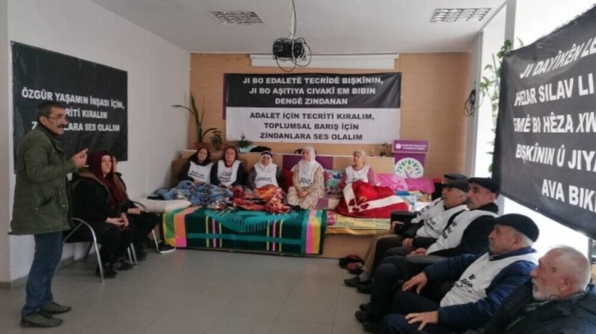 Li AMED’ê Nobeta Edaletê ya di pêşengtiya Komeleya Piştevaniyê ya bi Malbatên Girtîyan re (TUAY-DER) de didome, kete roja 105’emîn. Çalakvanên di nobeta li avahiya rêxistina Partiya Herêmên Demokratîk (DBP) didome de cih digirin, pêşmalkên ku li ser “Tecrîd sûcê mirovahiyê ye dinivîsî” li xwe kirin. Nazîme Bayhan aev tişt anî ziman: “Li ser birêz Ocalan tecrîdeke giran heye. Ev tecrîda ku 26 sal in didome, li gelê kurd tê sepandin. Ez dixwazim tecrîd demildest bi dawî bibe.”