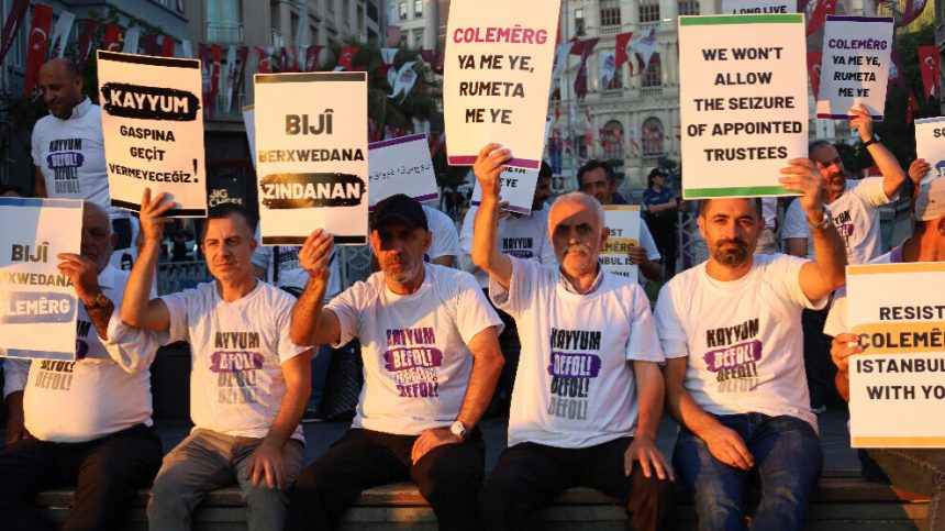 Nobeta ku Hêzên Ked, Aştî û Demokrasiyê li Qada Şîşhaneyê ya li Beyoglû ya Stenbolê li dijî desteserkirina Şaredariya Colemêrgê di roja 50’î de berdewam kir. Di nobeta ku tîşortên li ser “Qeyûm bicihime” li xwe hatin kirin de, pankarta “Li ber xwe bide Colemêrg Stenbol bi te re ye” hate vekirin û dirûşmeyên “Bijî berxwedana Colemêrgê” “Em ê bi berxwedanê serbikevin”, “Bijî xwişk û biratiya gelan” û “Kurdistan dê li faşîzmê bibe goristan” hatin berzkirin. Tevî gel, rêveberên partiyên siyasî, nûnerên sendîka, sazî û rêxistinan jî beşdarî çalakiyê bûn.
