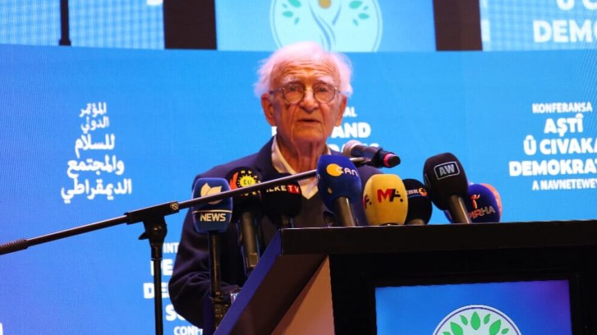 Alîkara Hevserokên Giştî yên DEM Partiyê ya ji Têkiliyên Derve Berpirsyar Ebrû Gunay moderatorî jê re kir. Prof. Norman Paech li rûniştinê axivî û qala hevdîtina sala 1996’an a bi Rêber Apo re kir. Paech diyar kir ku hevdîtin li dora du pirsên girîng hate kirin û got, “Ya yekemîn, rola tundiyê ya têkoşîna rizgariyê û ya duyemîn jî pirsa li ser avakirina dewleteke cuda yan jî têkoşîna ji bo xweseriya li nava vê dewletê yan jî rêvebirina xwe bi xwe. Pêwendiya herdu pirsan bi feraseta demokrasiyê hebû ku bi fikrekî muxalîf ê biryara terikandina têkoşîna çekdarî ya li hemberî Tirkiyeyê dabû, em bi heman nêrînê bûn. Her wiha nêrîna destberdana ji dewleteke Kurd a cihê jî di nav de bû. Vê yekê xwe dispart gumankariyekê ku li hemberî cîhana demokrasiya kapîtalîst xwedî bingeheke kûr û xurt bû. Demokrasî xwedî karaktereke hem şexsî hem jî emperyalîst bû û hîn jî welê ye. Armanca tevgera rizgariyê ne bidestxistina dewletê be, divê armanc ew be ku pêvajoya wergirtina biryarên siyasî radestî civakên xwecihî, taxan, odeyên pîşesaziyê û konseyan bê kirin.”