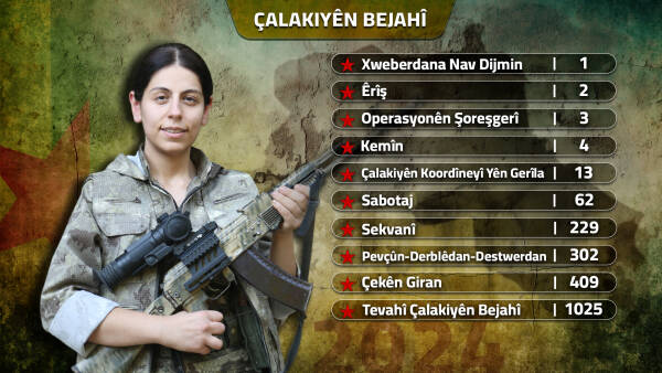 Di sala 2024’an de artêşa Tirk a dagirker bi teknîk û îstîxbaratê li Bakurê Kurdistanê êrişên xwe dewam kir û bi vî rengî hewl da encamê bi dest bixe. Dewleta Tirk a qirker mêtinger ku beriya niha digot, wê hebûna gerîla ya li Bakurê Kurdistanê tasfiye bike, bi vî rengî da pey xewn û xeyalên pûç û ji bo vê jî hin dem diyar dikir, li pêşberî têkoşîna bi biryar a gerîla fêhm kir ku êdî nikare bigihêje vê armanca xwe, lewma neçar ma ku dest ji van gotinan berde. Gavên stratejîk û taktîkî yên gerîla yên li gorî ruhê demê planên dijmin têk birin, ku ev yek di têkoşîna sala 2024’an de bi şênberî hate dîtin. Ya ku ev encama dîrokî û girîng afirand, sekna leheng a gerîla bû ku li Dersimê bi pêşengiya Edessa Cejna, li Botanê Bêrîtan Nûrhak Çiya, Herekol Şiyar, Brûsk Kato, Benda Amed û Serhat Jêhat, li Mêrdînê Mehmet Cûdî û Zerdeşt Sûrûç, li Serhedê Şêxmûs Malazgîrt û Berwar Dersim, li Amedê Hebûn Pîro û Botan Osyan, li Wanê Zagros Cûdî nîşan dan. Di têkoşîna sala 2024’an de li Bakurê Kurdistanê 36 hevrêyên me bi lehengî şer kirin û şehîd bûn.