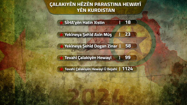Gerîlayên Azadiyê yên Kurdistanê bi çalakiya fedaî ya xurt a li metropolan a li dijî hedefên stratejîk, bi berxwedana fedaî ya li Bakur, bi taktîka parastina qadên azad ên li Herêmên Parastinê yên Medyayê û bi asta teknîkî ya Hêzên Parastina Hewayî yên Kurdistanê gaveke gelekî girîng avêt. Di Newrozê de ku cejna azadiya neteweyî û berxwedanê ya gelê Kurd de mizgînî da gelê me, ragihand ku li hemberî makîneyên mirinê yên SÎHA ku rejîma AKP-MHP a faşîst li dijî gelê Kurd bi xwînxwarî bi kar tîne êdî bûye xwedî derfeta tasfiyekirina wan, ji 13’ê Sibata 2023’an û pê ve bi giştî 15 SÎHA yên cuda anîn xwarê, dîmenên wan weşand. Ev çalakiyên Hêzên Parastina Hewayî di sala 2024’an de jî dewam kirin, di 27’ê Gulanê de li ezmanên Qendîlê SÎHA’yeke AKSÛNGÛR, 6’ê Hezîranê li ezmanên Asosê SÎHA’yeke ANKA û di 12’ê Tîrmehê de jî li ezmanên Asosê SÎHA’yeke AKSÛNGÛR hatin xistin. Dewlet û artêşa Tirk, rejîma AKP-MHP’ê ya faşîst ku gelekî propagandaya SÎHA’yan dikir, li pêşberî xistina wan ji aliyê Gerîlayên Azadiyê yên Kurdistanê hejiya, ji bo vê yekê nîşanî derve nede ti carî qebûl nekir. Ev nêzîkatiya rejîma faşîst a li pêşberî heqîqeteke li pêş çavan a nikare bê înkarkirin jî têrê kir ku bê fêhmkirin bê çiqasî şikestî, lawaz û tengav e.