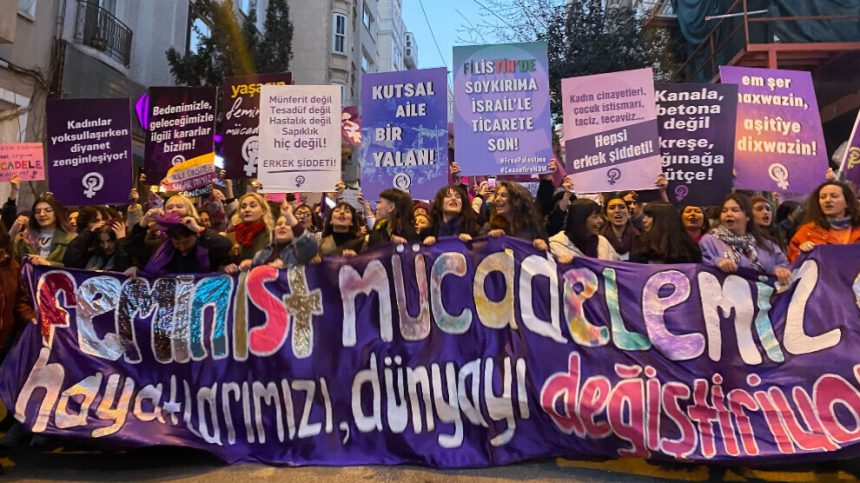 Jinan 23’emîn Meşa Şevê ya Femînîst a 8’ê Adarê bi dirûşmeya ‘Têkoşîna me ya femînîst jiyan û cîhanê diguhere’ li Kolana Siraselviler a Beyoglu pêk anîn. Tevî qedexeya Qeymeqamtiya Beyogluyê jî jin daketin kolanan û ber bi Kolana Siraselviler ve meşiyan.