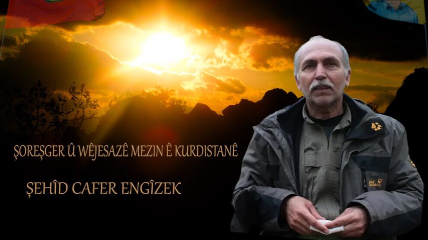 Di vê heyama ku têkoşîna azadiya Kurdistanê ya di pêşengiya PKK’ê de mezin dibe nîv sedsala xwe tije dike, li ser bingehê parastina hebûna gelê Kurd û pêkhanîna azadiya wê de deskeftiyên mezin hatin qezenckirin. Ji bo gihaştina van rojan, di serî de valaderxistina polîtîkayên înkar û îmhayê yên dewleta Tirk a qirker, di cîhanê de xuyanîkirina nasnameya Kurd, berdêlên mezin hatin dayîn. Me ji kêliya destpêkê ve heta îro bi hezaran egîdên bi awayê fedayane di refên şoreşê de gihaştin hev, şehîd dan. Meşa azadiyê ya mezin ku bi şeş kesan dest pê kiribû, îro xwe gihandiye bi milyonan û bi derbaskirina sînorên Kurdistanê bûye cîhanî. Bêgûman vana tev berhemên şehîdên me yên nemir ên her ji wan xelekek têkoşîna me ya azadiyê ne û egîdên ku îro di tunelan de, li eniyan li hemberî her cure hovîtiyê bi canbexşane li ber xwe didin, bi vî awayî navên xwe bi tîpên zêrîn di dîroka azadiya gelan de dinivîsîn in. Egîdekî ku di gihaştina vê astê ya têkoşîna azadiya Kurdistanê de xwedî kedekî mezin e, xeta milîtaniya Apocî di her şert û mercî de domandî, kariye bibe zarokekî bijare yê gelê Kurd ê berxwedêr yek jî rêhevalê me Cafer Engîzek e. Bi ragihandina şehadeta hevalê me Cafer ku li Kurdistanê bi qasî têkoşîna li dijî êrîşên qirkirinê, pêşengî ji pêşxistina xebatên wêjeyê jî kiriye re, em ji malbata wî ya hêja, gelê me yê welatparêz re sersaxiyê dixwazin; di şexsê rêheval Cafer Engîzek de Şehîdên Şoreşê yên bi jiyanên xwe ên mezin xeta têkoşîn û berxwedanê diyar kirine, destnîşan kirine ka li Kurdistanê jiyana azad bi kîjan berdêlan wê bikaribe were afirandin, bi rêz û bi minet bi bîr tînin; soza li ser bingehê azadiya fîzîkî ya Rêber Apo emê serfiraziyê teqez bikin, di şexsê dewleta Tirk a faşist de hişmendiya qirker têk bibin, armanc û xeyalên Şehîdên Nemir jiyanî bikin, nû dikin.