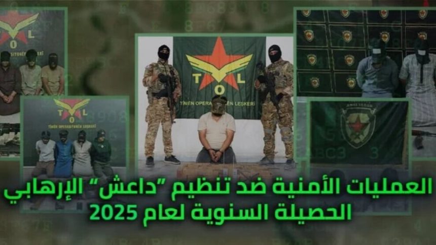 Navenda Ragihandinê ya Hêzên Sûriya Demokratîk (QSD) bi daxuyaniyekê bîlançoya sala 2025’an a operasyonên ewlehî û leşkerî yên li dijî çeteyên DAIŞ’ê eşkere kir.
