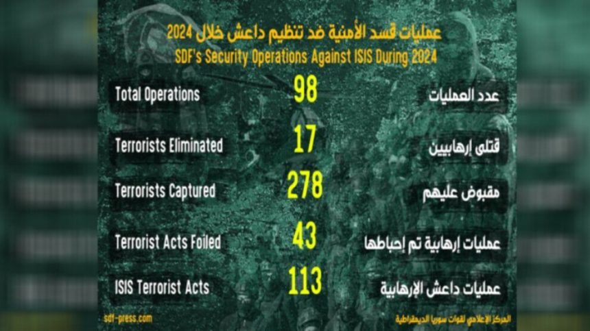 Navenda Ragihandinê ya QSDˈê bi daxuyaniyekê bîlançoya 2024ˈan a çalakî û operasyonên li dijî şaneyên çeteyên DAIŞˈê, aşkera kir.