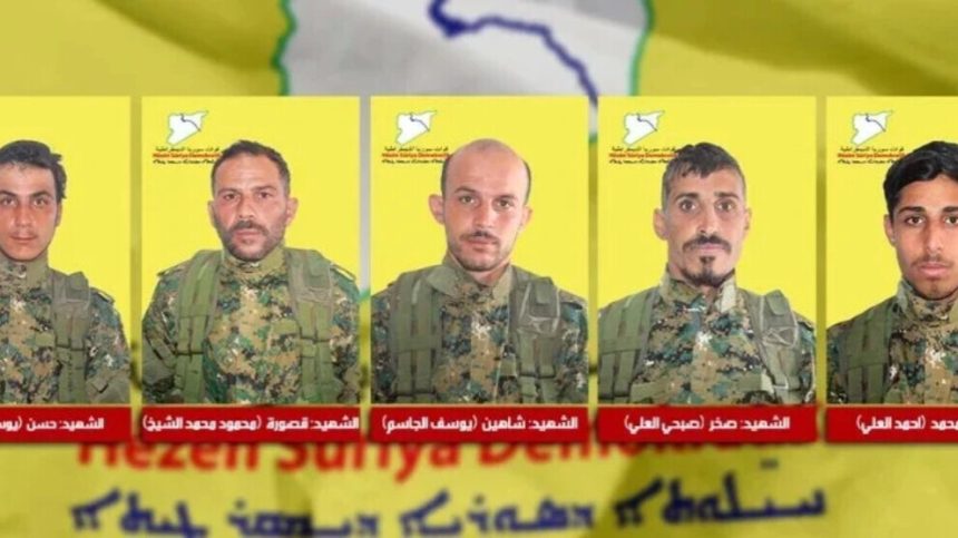 Di daxuyaniyê de hate gotin ku şervanên QSD`ê Ehmed Xadild El Elî, Subhî Hisên El Elî, Mehmûd Yûsiv Mihemed El Şêx, Yûsiv Hesen El Hemmaş û Yûsiv Xalid El Casim roja 28`ê Nîsanê di encama êrişkeke çeteyên DAIŞ`ê de li gundewarên Dêrazorê şehîd bûn.