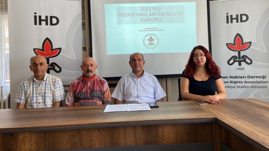 Hevserokê Giştî yê ÎHD’ê Huseyîn Kuçukbalaban raporê xwend. Kuçukbalaban diyar kir ku desthilatdariyê ji aboriyê bigire heta tenduristiya civakê her meseleyê kiriye pirsgirêka “ewlehiyê” û pirsgirêka Kurd dibe sedema şer û pevçûnan. Kuçukbalaban da zanîn ku di encama polîtîkayên diqewimin de di sala 2023’yan de di gelek qadan de mafên mirovan hatine binpêkirin.