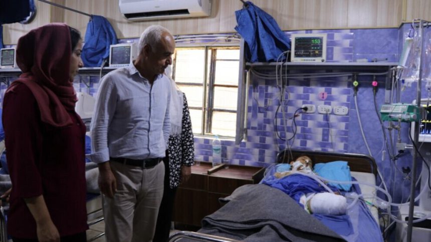 Şandeyek ji Rêveberiya Xweseriya Demokratîk a Kantona Efrîn-Şehbayê serdana her du zarokên birîndar kirin.