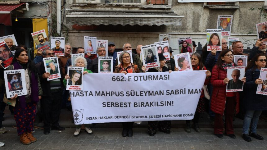 Endamên Komîsyona Girtîgehan a Komeleya Mafên Mirovan a Şaxê Stenbolê 662’yemîn çalakiya ‘’Rûniştina F’ê’’ li pêşiya bînaya komeleyê ya li Beyoglûyê li dar xist. Di çalakiya vê hefteyê de rewşa tenduristiya Suleyman Sabrî Mavî yê 75 salî hate ragihandin ku Suleyman Sabrî Mavî ji sedî 96 astengdar e û li Girtîgeha Girtî a Tîpa F a Wanê tê rehîngirtin.