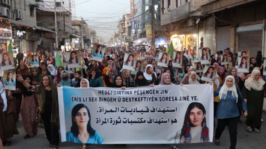 Gelê Qamişloyê bi meşeke girseyî êrîşa dewleta Tirk a dagirker li ser wesayîta rojnamevanên çapemeniya azad a li navçeya Seyîdsadiq ku di encama êrîşê de rojnamevan Hêro Behadîn û rojnamevan Gulistan Tara şehîd bûn, şermezar kir. Meş li pêş Navenda Mihemed Şêxo ya Çand û Hunerê vegerî mîtîngê.
