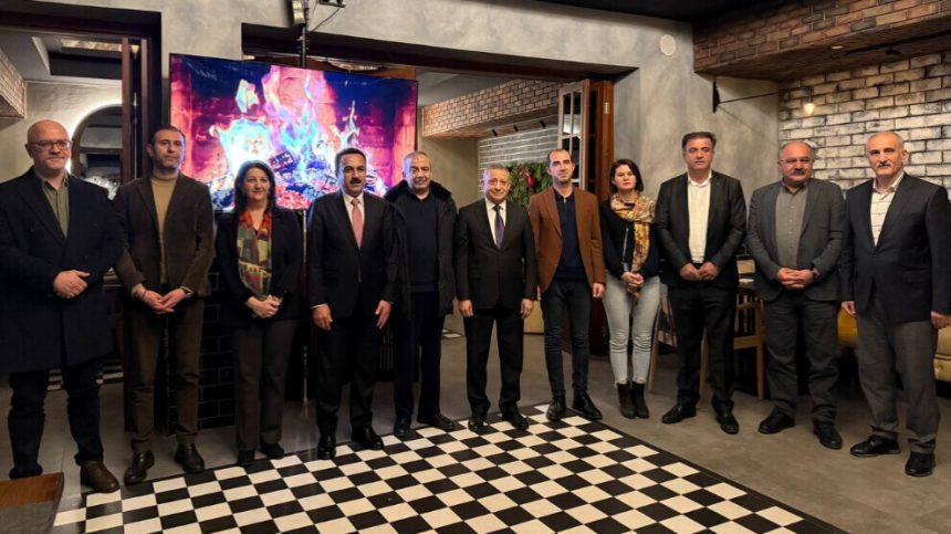 Endamên Heyeta DEM Partiya ya Îmraliyê Pervîn Bûldan û Sirri Sureyya Onder, Hevserokê Partiya Herêmên Demokratîk (DBP) Keskîn Bayindir, ji Bûroya Hiqûqê ya Sedsalê Îbrahîm Bîlmez û Ozgur Erol, Hevberdevkê Komîsyona Têkiliyên Derve ya DEM Partiyê Bedran Ozturk û Parlamenterên DEM Partiyê Gulcan Kaçmaz Sayyîgît û Mehmet Kamaç di nava şandeyê de cih digirin.
