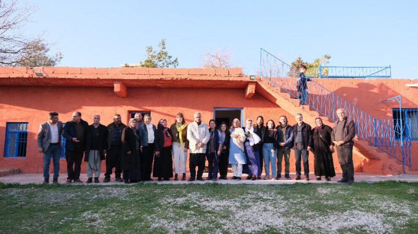 Şandeyeje ku ji nûnerên saziyên jinan yên Hîndîstanê pêk dihatin, ku ji bo bernameya Newroza Amedê hatibûn, piştî bernameyê serdana mala Rêber Apo ya li gundê Amara ya Xelfetî ya Rihayê kirin. Endamên Tevgera Jinên Azad (TJA) jî tevlî hevdîtinê bûn. Şande ji aliyê Mehmet Ocalan, Alî Ocalan, hevşaredara Xelfetiyê ya qeyûm tayînê şûna wê bibû Saniye Bayram û Mehmet Karayilan, rêxistina DEM Partî ya Xelfetiyê û gelek welatiyan ve hat pêşwazîkirin.