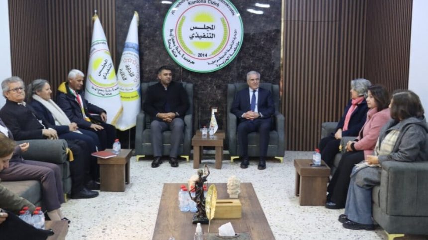 Hevserokê Meclisa Rêveber a kantona Cizîrê Hesen Şero û Şêwirmenda rêveberiya Xweser Jiyan Hesen şande li navenda meclisê ya Qamişloyê pêşwazî kir.