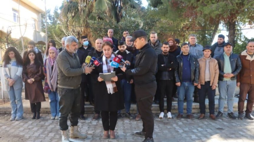 Saziya Avê ya Kobanê li pêş Şaredariya Gel a Kobanê daxuyaniyek da. Daxuyanî ji aliyê hevseroka Saziya Avê Zozan Xelîl ve hate dayîn.