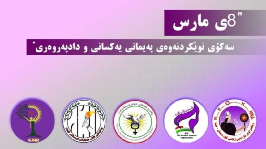 Saziya jinan yên Rojhilatê Kurdistanê bi navê Rêxistina Komeleya Jinên Azad ya Rojhilatê Kurdistanê (KJAR), Asaoya Jinên Kurd-Rêxistina Jinên Komele, Rêxistina Azadî ya Jinên Kurdistanê (NÎNA), Yekîtiya Jinên Demokratîk ya Kurdistanê-Îran û Rêxistina Afretan ya Xebata Kurdistana Îranê bi boneya 8’ê Adarê peyamek hevpar dan.