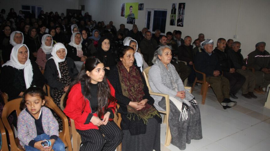 Merasîma bîranînê li Saziya Ciwanan a wargehê bi kombûna xelkê wargehê re bi deqeyek rêzgirtinê di kesayeta her sê şehîdan de ji bo tevahî şehîdên tevgera azadiya Kurdistanê destpêkir. Piştî rêzgirtinê li ser navê malbata Şehîd Evîn Goyî birayê wê Îsmaîl Kara axivî û diyar kir ku ew ê heta dawiyê li ser rêya şehîdan bimeşin.