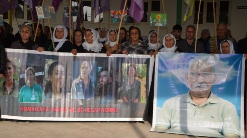 Daxuyanî bi dirûşmeyên ‘Bijî Serok Apo’, ‘Jin Jiyan Azadî’ û ‘Şehîd Namirin’ bi dawî bû.