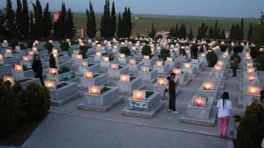 Merasîma ku bi dehan kes tevlê bûn, bi deqeyek rêzgirtin dest pê kir û mûm li ser gorên şehîdan hatin pêxistin.