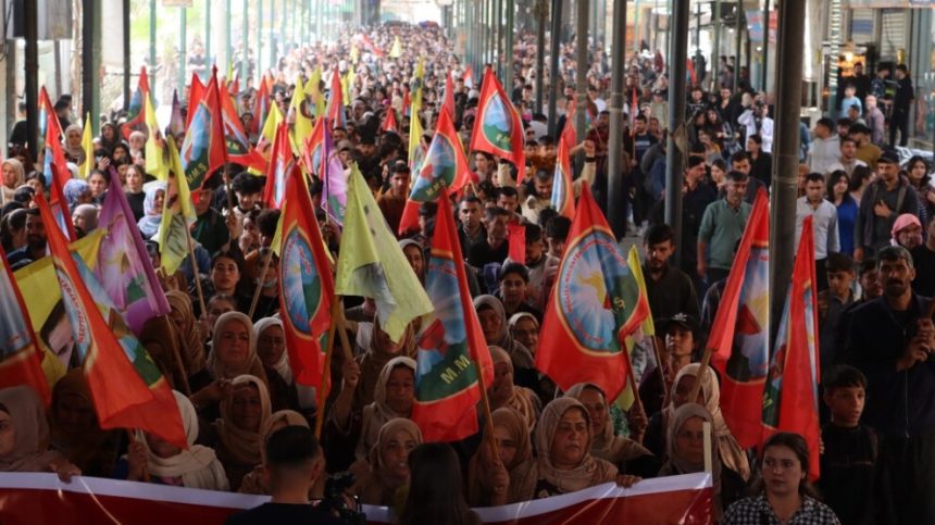 Bi hezaran şêniyên Kantona Firatê, ji bo azadiya fîzîkî ya Rêber Apo bi dirûşma “Azadiya fîzîkî ya Rêber Apo, misogeriya civaka demokratîke” meşiyan.