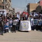 Bi sedan şêniyên Kantona Firatê, sazî û dezgehên Rêveberiya Xweser û xwedekaran meşek bi dirûşma “Na ji kuştina sivîlan re, erê ji bo Sûriyeya demokratîk” daketin qadan û meşiyan.