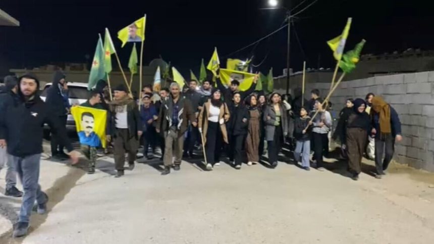 Di çalakiyê de bê navber dirûşmên ‘Bijî Berxwedana Rojava’ û ‘Bê Serok Jiyan Nabe’ hatin qîrkirin.