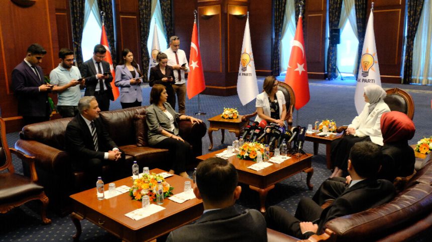 Şandeya DEM Partiyê ya ku ji Hevseroka Komîsyona Ziman û Çandê Cemîle Tûrhalli Balsak, endama Meclîsa Partiyê Fatma Koçyîgît Oner û parlamenterê Wanê Zulkuf Uçar pêk dihat çû serdana AKP’ê. Li ser navê AKP’ê Cîgira Serokê Giştî Belgîn Uygur, endama MYK’ê ya Jinan Rûkiye Toy û endamê MYK’ê yê Ciwanan Abdullah Uçan pêşwaziya şandeya DEM Partiyê kirin.