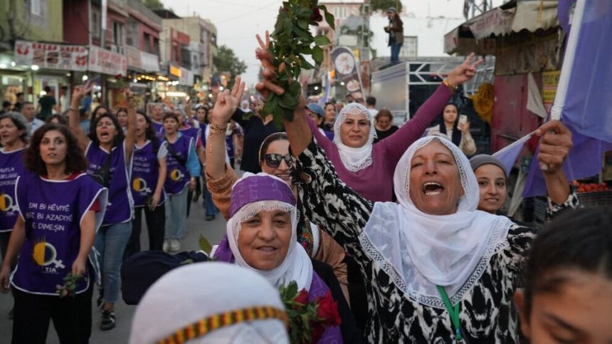 Meşa “Bi hêviyê ber bi azadiyê ve” ku Tevgera Jinên Azad (TJA) di 1’ê Cotmehê de da destpêkirin, dewam dike. Jinan ku roja 4’emîn li pey xwe hiştin, li Edeneyê bi beşdariya bi sedan kesî meşeke bi heybet lidar xistin. Jin ji aliyê dayikên aştiyê ve bi kulîlkan hatin pêşwazîkirin û roja xwe bi mîtîngeke bi heybet qedandin. Jinan tim û tim dirûşma “Jin, Jiyan, Azadî” qîriyan û daxwaza xwe ya ji bo jiyaneke azad a bi Rêber Apo re careke din anîn ziman.