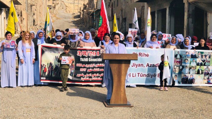 Di sala 1960’an de Xuşkên Mîrabel, ji ber ku li dijî vê pergalê sekinîn, bi destê zihniyeta mêr-dewlet bi awayekî hovane hatin qetil kirin. Di sala 2014’an de em wekî jinên Êzidî yên ku bi nasname xwe, çanda jin-dayîk diparêzin rastî fermanekî mînaka wê çênebûye hatin. Bi hezaran jin û keçên me hatin revandin, firotin, bi qirkirina fîzîkî û her cure tundiyê re rû bi rû man. Li Efganîstanê jin ji ber rêjîma çete ya Talîbanê ji hemû mafê xwe yê jiyanê hatine qutkirin. Li Hindîstanê bi awayekî pergalî jin rastî destdirêjiyê tên. Li Îranê ji ber zext û tundiya li ser jin tê meşandin di sala 2022’yan de jina Kurd Jîna Emînî bi rêbazekî herî tund hat qetilkirin. Jinên li dijî qetilkirina Jîna Emînî serî hildan û têkoşîna azadiyê dimeşînin, îro cezayê darvekirinê li wan hatiye birîn. Bi heman zihniyetê, li Tirkiyê, Iraq, li welatê Rojhilata navîn û cîhanê di şerê cîhanê yê sêyemîn de li dijî jinan şerê qirkirinê tê meşandin. Rêber Apo bi felsefeya jin, jiyan, azadî bersiva şerê mezin yê li dijî jin dide. Em wek jinên Êzidî vê felsefeyê dikin bingeha azadiya xwe û civakê.