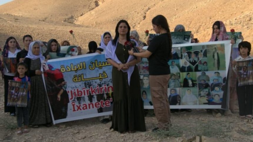 Hevseroka Desteya Rêveberiya Xweser a Şengalê Riham Hesen qala jenosîda Êzîdiyan ku di asta cîhanê de hinek welatan qebulkiriye lê dewleta Iraqê qebul nekiriye, wiha anî ziman: “Tu caran emê nehêlin dewleta Iraq û Netewen Yekbûyî (NY) me rêva bibin. Ji ber heta niha dewleta Iraqê jenosîda li ser Êzîdiya qebul nekiriye. Heman demê de li beramberî ev gorên komî çavên xwe girtiye. Jenosîda Êzîdiya ruxmê 14 dewleta qebul kiriye. Lê dewlata ku em tê de jiyan dikin jenosîd qebul nekiriye. Em ji dewleta Iraqê re dibêjin dibe ku hûn jenosîd qebul nekin, lê bizanibin Çiyayê Şengalê şahîdê jenosîdê ye.”