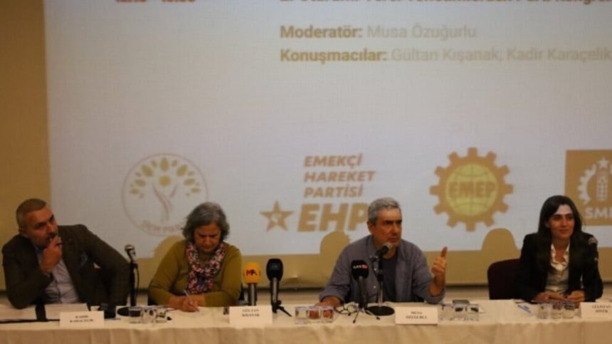 Partiya Demokrasî û Wekheviyê ya Gelan (DEM Partî), Partiya Tevgera Kedê (EHP), Partiya Azadiyê ya Civakî (TOP), Partiya Kedê (EMEP), Partiya Karker a Tirkiyeyê (TÎP) û Federasyona Meclîsên Sosyalîst (SMF) bi sernavê “Em ji bo aştî û demokrasiyê dicivin, li ser derfetên têkoşînê diaxivin” komxebatek lidar xistin.