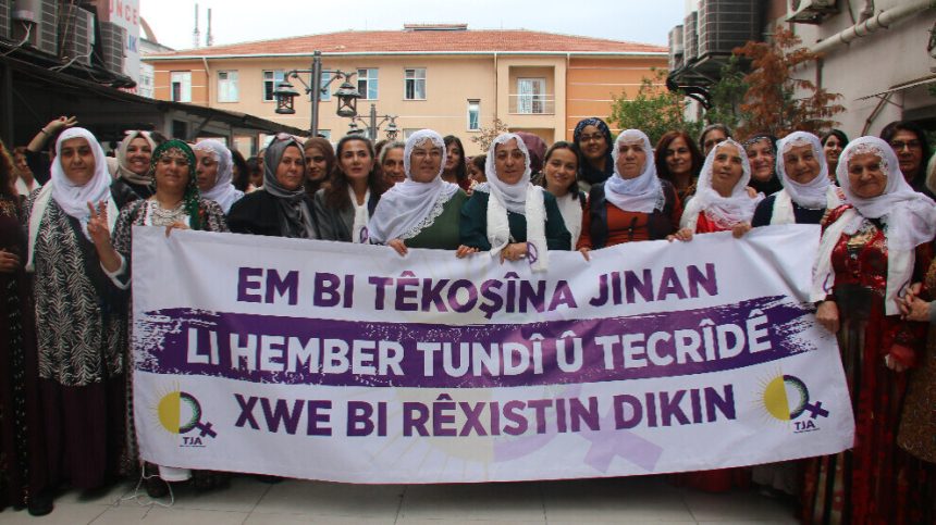 Di daxuyaniyê de dirûşmeyên “Jin jiyan azadî” û “Bijî tekoşîna jinan” hatin berzkirin.