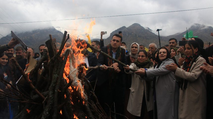 Agirê Newrozê bi çepik, tilîlî û berzkirina dirûşman hat pêxistin. Parlamentera DEM Partiyê Newroz Uysal Cejna Newrozê li berxwedêran pîroz kir. Newroz Uysal dema ku Newroza Rêberê Gelê Kurd Abdullah Ocalan pîroz kir, gel dest bi çepik û dirûşman kir.