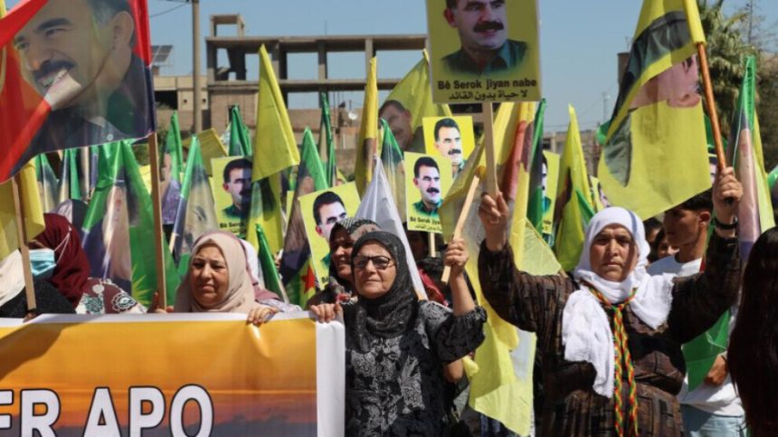 Di meşê de tim û tim dirûşma ‘Bê Serok jiyank nabe’ hate qîrîn.