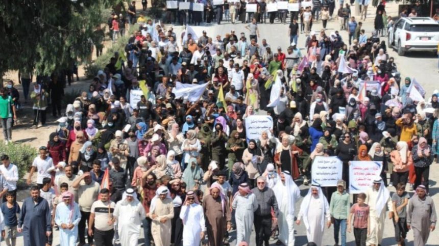 Malbatên şehîdan, endamên saziyên Rêveberiya Xweser a Kantona Minbicê, Meclisa Leşkerî ya Minbicê, şêx û rûspiyên eşîran û bi sedan şêniyên kantona Minbicê bi meşekê êrîşên hikumeta Şamê û çekdarên Dîfa El Wetenî yên li ser gundewarên kantona Dêrazorê şermezar kirin.