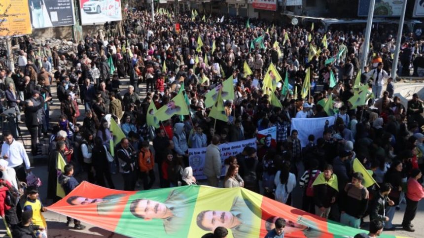Înîsiyatîfa Gel a Bajarê Qamişloyê ji bo azadiya fîzîkî ya Rêber Apo li bajarê Qamişloyê bi dirûşma “Dem dema azadiya Rêber Apo ye” meşek lidar xist.