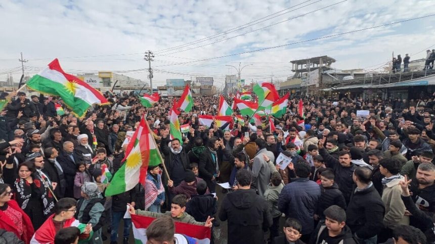 Ji hemû beşên civakê welatî tevlî meşê bûn û bê navber dirûşmeyên piştgiriya ji bo Rojava berz kirin.