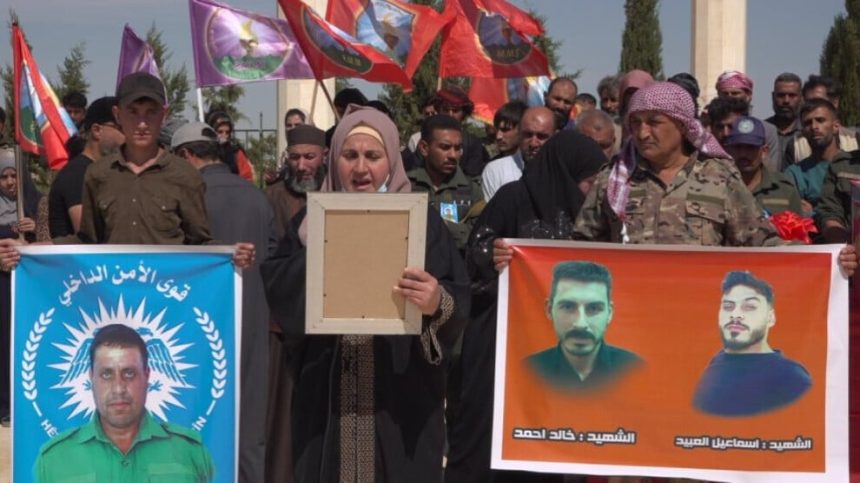 Endamê Hêzên Ewlekariya Hundirîn Hisên Xelef El Elî 26’ê Îlonê dema erka xwe bi cih dianî, şehîd bû, şervanên Hêzên Erka Xweparastinê Xalid Hisên El Ehmed û Îsamîl Mihemed El Ebid jî di heman dîrokê de di encama qezayeke trafîkê de şehîd bûbûn, îro bi merasîmeke girseyî li Pakrewangeha Şehîdan a li bajarokê Hikumiyê yê kantona Reqayê hatin veşartin.