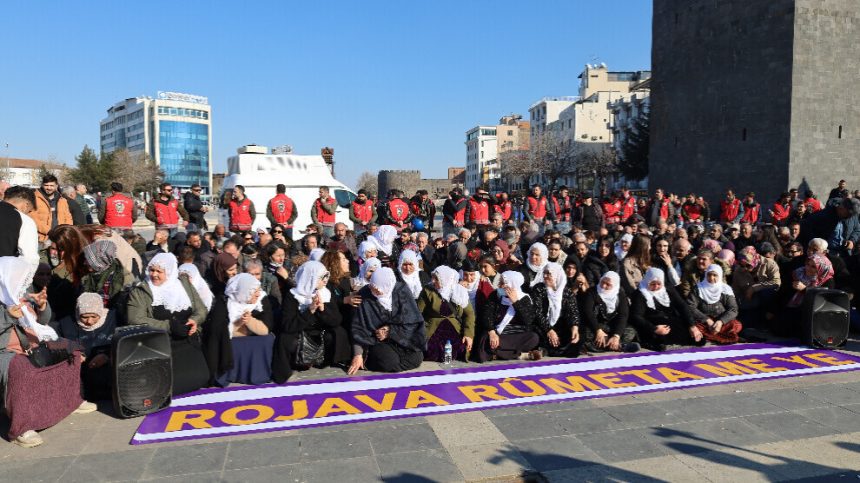 Piştî çalakiya rûniştinê, daxuyanî hate dayin. Di çalakiyê de pankarta “Rojava rûmeta me ye” hate hilgirtin. Hevserokê DEM Partiyê yê Amedê Abbas Şahîn di çalakiyê de axivî û got: “Her ku em qala aştiyê dikin, çeteyên xwe dişînin ser gelê Kurd. Tu xêra vî şerî ji bo gelan nebû û dê nebe. Êdî hûn mecbûr in hebûna gelê Kurd qebûl bikin. Bi êrîşên çeteyan, bi qetilkirina sivîlan hûn nikarin bi ser kevin. Gelê Kurd bi hev re ye û statûya xwe diparêze.”