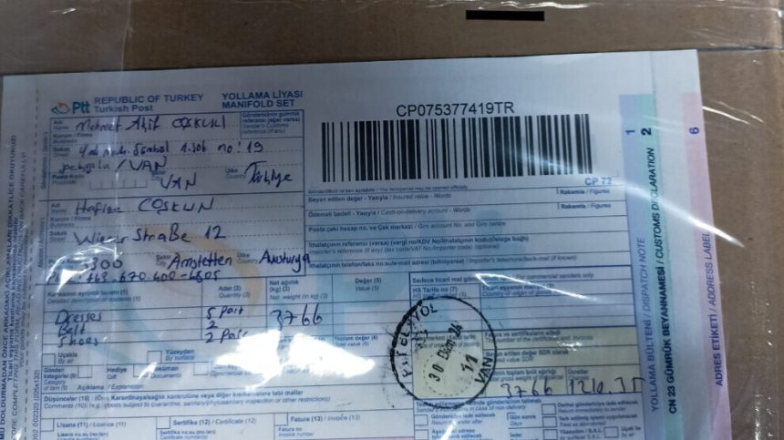 Bûyereke ku li Wanê qewimî, car din bêtehemûliya saziyên fermî ya li hemberî Kurdan nîşan da. Akîf Coşkûn ê li Wanê dijî, di 30’ê Cotmeha 2024’an de ji bo malbata xwe ya li Awûstûryayê dijî cil û bergên netewî yên çanda Kurdî, kirî. Coşkûn ev cil û beg ji şaxeke PTT’ê ya li Wanê bi rêya kargoyê şand. Coşkûn got, di dema şandinê de coş û berg di kontrolê re derbas bûne, xistine qutiyekê û kar û barên wê qediyane. Lê belê piştî 25 rojan bi peyameke ku ji PTT’ê hatî, hat zanîn ku kargo nehatiye radestkirin. Di peyamê de wiha hatibû gotin, “Destûr nehatiye dayîn ku kargoya we bikeve hundirê welêt.”