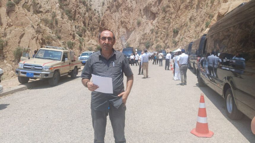 Piştî ku em ketin nava herêma Silêmaniyeyê û ber bi qada çiyayî ve çûn, konvoya ji 30 wesayitî nêzî qada merasîmê bû, ku ji hebûna tîmên taybet ên rûyê wan nixumandî ev yek diyar dibû. Piştî ku em gihîştin ber devê şikeftê ji me re hate gotin ‘bila mêvanên me derbas bibin’ û rê dan me ku em bigihêjin cihê merasîmê. Ketina me ya li qadê ji aliyê pîşeyî ve girîng bû. Her tişt li pêş çavên me diqewimî û bi qasî ku em bibînin nêzîkî me bû.”