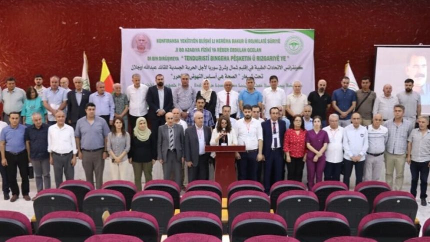 Konferansa Yekitiyên Bijîşkî li Herêma Bakur û Rojhilatê Sûriyeyê ku ji bo azadiya fîzîkî ya Rêber Apo vê sibehê bi dirûşma “Tenduristî bingeha pêşketin û rizgariyê ye” li avahiya Zanîngeha Rojava ya Qamişloyê dest pê kiribû, bi dawî bû.