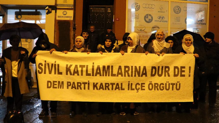 Rêxistina Partiya Wekhevî û Demokrasiyê ya Gelan (DEM Partî) a Kartalê têkildarî êrîşên li ser Minbicê li ber avahiya navçeyê daxuyanî da. Di çalakiyê de pankarta “Kokujiyên sivîl rawestînin” hat vekirin û dirûşma “Em ê bi berxwedanê bi ser bikevin” hat berzkirin.