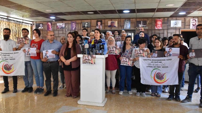 Rojnamevanên li Herêma Bakur û Rojhilatê Sûriyeyê bi rakirina wêneyên rojnamevan û çalakvan Pexşan Ezîzî û rojnamevan Silêman Ehmed beşdarî daxuyaniyê bûn.